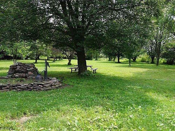 All of the work has been done from top to bottom in this log home! Large kitchen w/all new stainless appliances & plenty of cabinet/counter space. Kitchen is open to dinning room which is open to living/family room. Large sun room right off dinning room with 4 sliders to enjoy the private setting. Living room features wood burning fireplace with beautiful stone hearth plus built-in cabinets. Spacious master BR w/2 closets. Full basement provides additional space, currently used for workshop. 2 car attached garage plus additional 29' x 28' garage offers all the storage you'll need. Property even has a small creek running along the side. Everything has been done - new roof, drilled well, furnace, water heater, flooring + much more! Home is immaculate and move in ready.