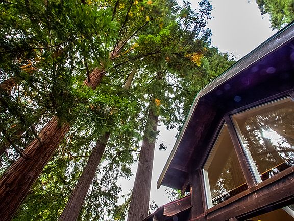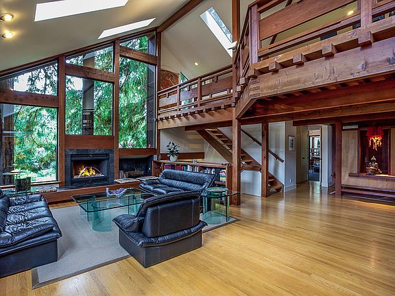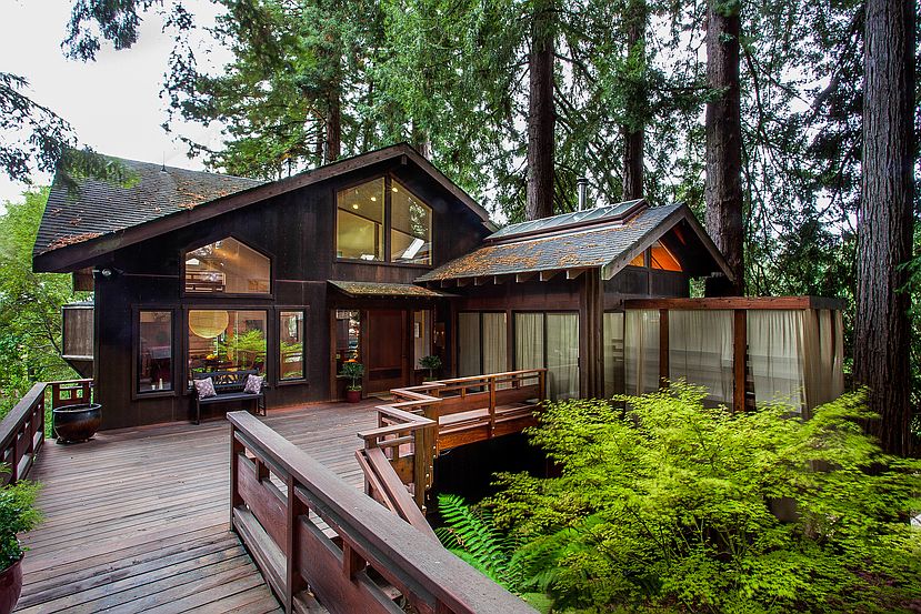 Stunning home in Redwood Grove. Soaring Ceilings, LR, FDR, Chef's Kitchen, Mezzanine Family Room, Spa Wing incl: Full Bath, Meditation Room, Hot Tub Pavilion. Exquisite Japanese joinery throughout. 4 Bedrooms/4 Bath Main House + Loft Apt (Pot'l Rental) over Garage. 1/4 acre. 2014 Seismic Retrofit.
