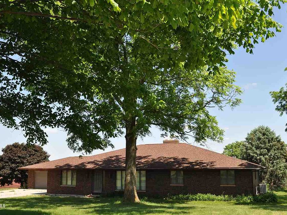 A private lane leads to this very unique 13.3 acre rural setting that includes a 4,620 Sq/Ft all Brick House featuring 3 bedrooms, 2 full and 2 half baths and a very large finished lower level. Main floor includes dining room area, 2.5 baths , 3 Seasons Room, family room with stone fireplace, 3 bedrooms with the Master Bedroom having its own private bath, office room and utility area with main floor laundry. Complete finished lower level includes another family room with stone fireplace, huge game room area, full kitchen, half bath, storm cellar and plenty of storage room. The outside features a pond, 48 x 32 Quonset building, 154 x 36 metal barn with a 39 x 32 attached heated machinery repair building, 3 Harvestore structures, 2- 20 x 80 and a 20 x 40 and a concrete manure storage pit. New roof was installed on the house in 2011. Property to be sold "As-In Condition" .