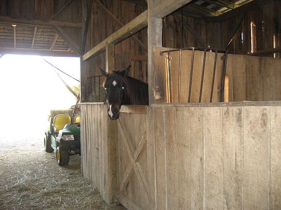 36-acre Harmony's Rocky Farm (www.harmonysrockyfarm.com)is fenced,has electricity in the 6-stall stable,a lean-to with stall,2 tack rooms,chicken house(with chickens),a potters house,and more. Riding trails, a creek at the border,rolling hills and more.Yard hydrants,a trailer plug for visitors. The Beautiful log home built in 1996 has t/g pine flooring and oak cabinets. 2 bdrms & 2 bths with a family room and eat-in kitchen w/ vaulted ceiling. Stone foundation, 3 Yr old tin roof, Double pane windows, and a deck under construction on back.Appliances and air compressor convey.PRN 22960 has creek