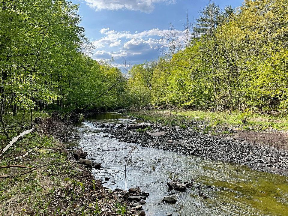 A heirloom waterfront property with established hiking trails, historic rock walls, swimming holes, mature sugar maples, Catskill mountain views and a ready-to-build, sunshine-filled site for your future home. Building & Land Details: -Lot Size: 123.9 acres. -Building sites have been cleared. -Perc Tests and Septic Engineering Plans completed September 2021, including stamped and signed SDS 11”x17” drawings. -Existing well in place -Electric ready to be hooked up from an easily accessible telephone pole. -Recent partial survey. Amenities & Benefits: -A nature lover's dream. Woods of Witch Hazel, Pine, Sugar Maple, and many more native tree species. Large Catalpa trees, mature Lilac, Apple trees, and Forsythia surround the primary building site. Ephemeral flowers including but not limited to - Dutchman’s Breeches, Trout Lily, etc. Mushrooms abound! -The dynamic Kiskatom creek provides swimming holes , a small waterfall and many places for trout fishing and lounging on the rocks. -Sunset Mountain views from walking trails. -A stones throw from the much loved Glen Falls House and part of the local vibrant Round Top arts community including The Petronio Residency Center, and LivingStone venue. (Opening spring 2022)