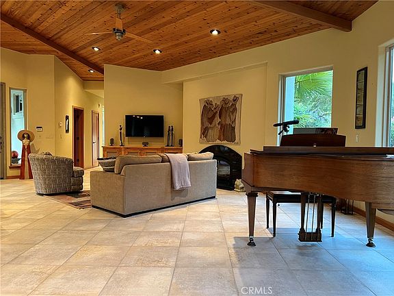 Enchanting describes this extraordinary property located on nearly five acres surrounded by magnificent California Live Oaks. The location is private, quiet and secluded, yet convenient to everything the Cental Coast has to offer. The spectacular primary structure was thoughtfully designed to provide visual enjoyment from every room and hallway throughout this striking home. The serpentine pathways provide convenient access to the beautifully landscaped grounds which include tranquil ponds and lovely patios. This wonderfully unique home is designed with two separate bedroom wings which are joined together by an open and spacious living area. The primary bedroom suite is generously sized and includes a separate attached study with a cozy fireplace. The two additional ensuite bedrooms are also exceptionally large. The great room features a magnificent open beam ceiling and fireplace, an impressive gourmet kitchen and inviting dining area. The space is light and bright with multiple windows and patio doors. Conveniently located off the kitchen is a combination laundry area, wet-room and pantry; which is attached to the extra large triple vehicle garage. In addition to the main home there is a separate two story barn which incorporates additional living areas, a work shop or craft room, an exercise room, a 3/4 bath with large walk-in shower and a half bath. There are significant view decks off the upper level from the front and back of this multi-function structure. This secondary structure has a separate septic system and fuel source. There is a solar system, well and above ground water storage which supports both structures.