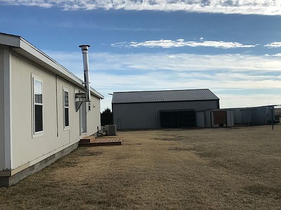 Make an appointment to come view this newly listed country home only 6 miles south of Colby right off the highway. No dirt roads! This modular home sits on 2.34 acres of established buffalo grass and is surrounded by trees on 3 sides. You will love the big yard! This home is 1620 square feet and the open floor plan is very welcoming. The living room, dining room and kitchen are all in view from the front door. The windows in the living room offer lots of natural lighting. A wood burning stove is tucked in the corner of the dining room and is a great source of heat on those cold, snowy nights! French doors also open up to the patio from the dining room. The kitchen is well lighted and offers plenty of cabinet space, including a pantry closet. The wrap around counter space can serve as a bar for eating as well. All appliances stay in both kitchen and laundry. The laundry room is located directly off the kitchen and serves as a mud room. There are 4 bedrooms, one of which was used as an office because of its double doors. The master bedroom has its own huge master bath that has an inviting garden tub and separate shower. A second full bathroom is located at the opposite end of the house. This home has been freshly painted and all new carpeting throughout. This property also offers a 30’x40’ shop building with concrete floors and concrete pad out front. It is insulated and offers attic storage space as well. It is wired for 120 as well as 220 volts. An air compressor is included and has multiple connection points along the interior walls. The shop is very well lit. The corner of shop is partially plumbed for a bathroom. This property also offers 20’X20’ dog kennel with a garden shed as a dog house. Great for animal lovers! The yard is well lit with rear and front lighting. The air conditioning unit was replaced in fall of 2016. New hot water heater in winter of 2016. New roof in 2017. Country living with a location like this is hard to find! Call any time to set up appointment to come view this wonderful house and make it your home! Serious inquires only please.