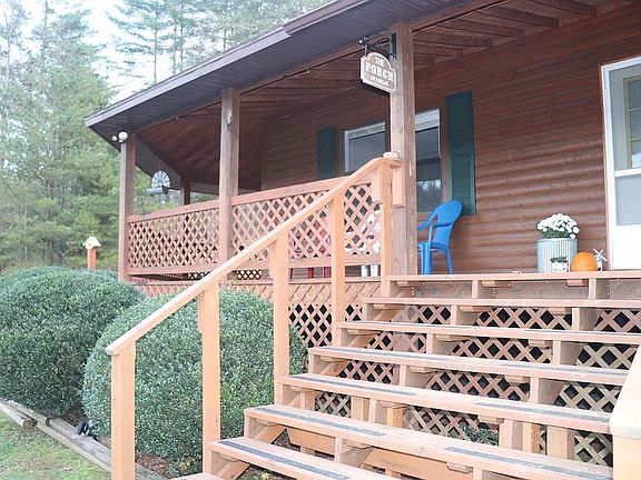 If you're looking for a place to get away to the beautiful NC mountains, this log siding home, with a rushing stream down one side of the property, almost 4 acres of mountain laurel filled woods, is just where you want to be! Wrap-around porch, deck area for a hot tub, stone fireplace with wood stove insert, master on main with shower & jetted tub, walk-in closet, kitchen w/ granite countertops& wood floor, separate dining area and eating area in kitchen, laundry on main, 1 yr old carpet, new private well, unfinished basement with separate outside access, attached carport parking and plenty of space for an RV or boat! Internet service, garden and blackberry vines- worth the drive!