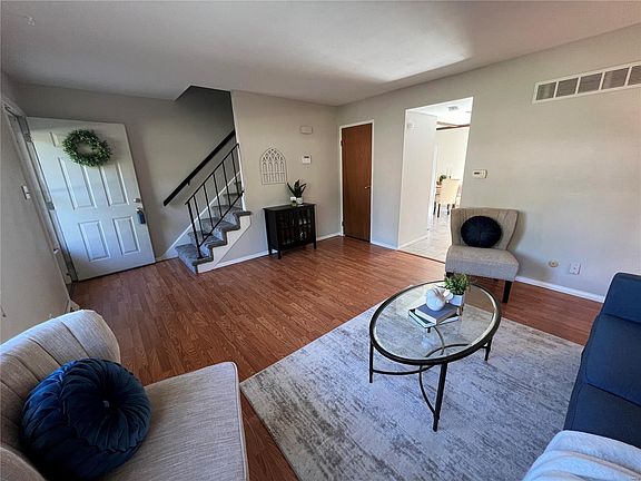 Super nice townhome with 2 large bedroom and 3 bath. New carpet up the steps and in bedrooms. New kitchen flooring. Mowing, water, sewer, & trash all provided in association. Maintenance free life style. Minutes from interstate access and 157 shopping. Partially finished basement with office, laundry, utility sink plus extra bath. Move in ready, and cheaper than renting for sure! Location: City, Suburban