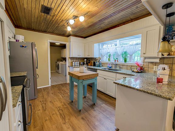 Gorgeous updated spacious 3 bedroom 2 bath on 5 acres mol with fenced in back yard, separate detached man cave or music room, shop with power, storage shed, and pole barn. Inside you have granite, updated kitchen and bathrooms, all high end appliances stay, crown molding, chair rail, wood ceilings, wood floors, wood burning fireplace, living room, plus a large den, and office or craft room. Lots of storage space. Covered front and rear porches, storage space above the front porch, circular driveway. Brand new thermo pane windows. This one is a must see!!