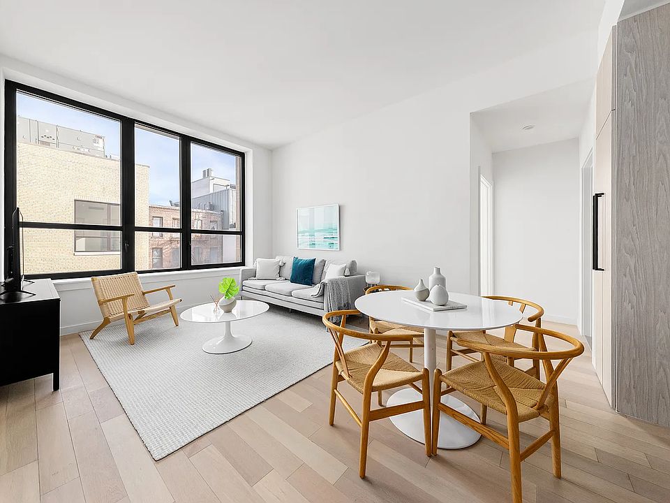 Luxurious LOFT-like living in the heart of Greenpoint. Welcome to 1080 Lorimer, the perfect blend of old and new architecture set against the vibrant neighborhood of Greenpoint. With soaring 10' ceilings and large gracious layouts, each unique home gives off a feeling of grandeur and sophistication. This brand new 1-bedroom, 1-bathroom penthouse at 1080 Lorimer, a coveted luxury condominium that reimagines an early-20th century icon for refined 21st century living. Eastern exposure illuminates airy interiors that exude modern sophistication and elegance. Beautiful 5-inch-wide European oak floors complement high ceilings, gallery-style walls, and double-paned thermally-broken steel casement windows. Several auxiliary spaces offer options for storage, a home office, crafts room, and more. An open-concept living room, dining room, and kitchen maximizes space and natural light. The corner kitchen is equipped with chic Cambria countertops and backsplash, custom cabinets with matte black pulls, PABLO lighting, Hansgrohe fixtures, and a suite of fully integrated Bosch appliances. The bedroom has a large reach-in closet, and the pristine full bathroom has a custom vanity, Kraus sink, porcelain tiles, Lightology lighting, a Robern medicine cabinet, Waterworks fixtures, and a Toto toilet. A laundry closet with a Bosch washer/dryer completes the home. 1080 Lorimer is a former savings bank designed by Helmle & Huberty in 1906. The building retains its imposing neoclassical façade and shingled dome while offering 29 incredible homes, and thoughtful amenities. It is moments from dozens of trendy restaurants, bars, cafes, and shops, and it is close to McCarren Park, Williamsburg, Bushwick Inlet Park, and Marsha P. Johnson State Park. Amenities include a fitness center, private lounge, virtual doorman system, package room, bicycle room, and landscaped courtyard with several seating areas and a grilling station. Public transportation options include the NYC Ferry and the G subway line. Private storage is subject to availability and fees. Pets are welcome. All measurements are approximate and subject to normal construction variances and tolerances and may vary from floor to floor. Sponsor reserves the right to make changes in accordance with the terms of the offering plan. The complete offering terms are in an offering plan available from Sponsor. File No. CD19-0223. Sponsors: 807 Manhattan Avenue LLC. Located at 38 East 29th Street-9th Floor New York, NY 10016. Exclusive Sales and Marketing by SERHANT. New Development. Equal Housing Opportunity.