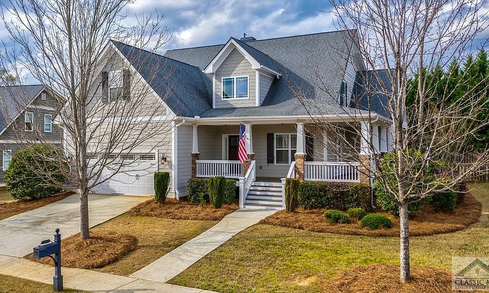 Franklin Grove is a fist class gated community found in the award winning North Oconee School District in Oconee County near Hwy 316 and Hwy 78 and a short drive to The University of Georgia. This home offers the enjoyment of the expansive covered front porch and the 12 x 25 ft back deck overlooking a large fenced backyard. The home includes a total of 4 bedrooms, 3 1/2 baths and a large bonus room with the master suite being located on the main floor. The oversized kitchen has many cabinets and lots of granite counter top space, stainless appliances, decorative tile backsplash, built in wine rack and plate rack and other custom details and is the perfect size and layout to accomodate a large gathering! Site finished hardwoods are found throughout the main floor including master suite and stairs. Custom 2" plantation shutters cover every window and door in home. A wood burning fireplace is located in the two story family room. Upstairs are three bedrooms, two full baths and a large bonus room. The main floor laundry room and mudroom area located near the garage includes lots of cabinet storage with lots storage through out the home. New Roof April 2020. Exterior painted in 2018, interior painted in 2020. Owner is a licensed realtor in State of Georgia. The home is vacant and easy to show!