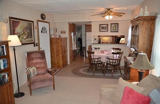 Lush gardens surround this 2 bedroom open floor plan manufactured home in a fabulous country location. Sun filled living room opens to casual dining area. Kitchen with new counter top and numerous cabinets. Many updates including replacement windows, furnace and roof. Stackable washer and dryer in full bath. Large sun room with extra storage. Small pet allowed.
