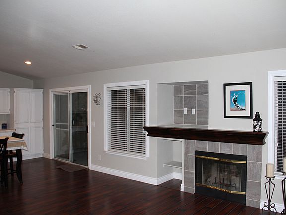 Welcome Home! This light and bright corner lot home features 3 bedrooms, 2 full baths with an open floor plan & vaulted ceilings. The interior soft gray paint with custom dark wood laminate floors, new base boards & crown molding create a feeling of tranquility. There are new doors throughout with oil rubbed bronze hardware. The kitchen has been updated and includes stainless appliances with an eat-in kitchen and family room with newly tiled fireplace & dark wood mantel. The master bedroom has a wood sliding glass door, tile floors & a stylish master bath with gorgeous new tile shower, dual sinks and a walk-in closet. The 2nd bathroom has been beautifully updated & includes a new vanity, tile floors & sink. One bedroom has been created as a lovely dining area with new glass french doors & crown molding. The laundry room is inside and includes front loading washer & dryer. The backyard is great for entertaining with saltwater pool and spa, stamped concrete patio & backyard drainage system.