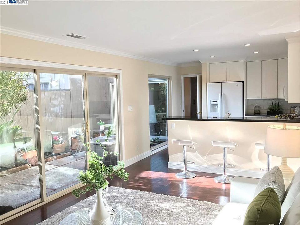 This rare H model sunny and airy town home not only offers premium square footage to stretch out, but so much more. Starting with the interior access to the house from the 2 car garage, you�ll love the look of the shiny engineered hardwood floors, the remodeled white kitchen with dark stone counters, and the serene courtyard patio with lush greenery. This airy town home includes 3 bedrooms, 2.5 bathrooms, family room off the kitchen, formal dining space, formal living room, and an extra family room on the 2nd floor. The signature courtyard outdoor patio creates an outdoor/indoor living space on those perfect Bay Area days. This home is located in the subdivision of Bay Farm Island in Alameda close to many amenities including easy access to freeways, groceries, shopping, parks, golf course, airport, and top rated schools. Come see this beautiful town home and all it has to offer.