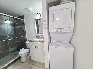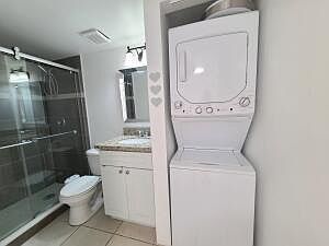 WASHER & DRYER IN THE UNIT. THIS GROUND FLOOR UNIT COMPLETELLY RENOVATED, FRESHLY PAINTED WAS METICULOUSLY PREAPRED TO BE ENJOYED!! ONE BEDROOM ONE BATHROM, WOOD LAMINATED FLOOR THROUGHOUT LIVING DINING & BEDROOM ROOMS AREA, AND TILE FLOOR IN KITCHEN AND BATHROOM. , NEW KITCHEN CABINETS AND APPLIANCES, OPEN BALCONY. CLOSE TO CLUBHOUSE, FITNESS CENTER, BUSINESS CENTER.