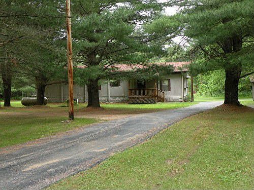 2 bedrooms, 1 bath mobile home on 12 acres of land. Pond, shade trees, and plenty of room to roam. Furnace is 3 years old, propane tank is owned and will transfer to new owner, saving you lease money. What is really amazing about this place are the many outbuildings that have been added over the years, some in need of repair or removal, the large outbuilding frame is an old greenhouse that possibly can be refurbished to be a greenhouse again. You'll love the large White Pines, there is also Black Walnut, and Apple Trees. Located a short distance from town on a paved county-maintained road, with a blacktopped circle drive and a 1.5 car garage. A property like this doesn't come up often....you won't want to miss it!