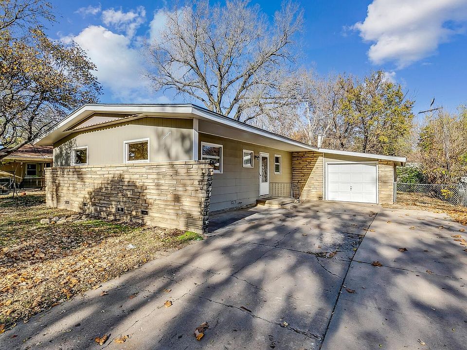 New to the market, this ranch home has great curb appeal with mid mod touches! Beautiful original hardwood floors and new interior paint throughout! Updated kitchen boasts butcher block counter tops, freshly painted cabinetry, new wood floors, and all new stainless steel appliances that stay! Adjacent hearth room offers plenty of space to entertain and has a stack stone fireplace and sliding glass door which leads to the backyard. The utility room off the kitchen offers a half bath and laundry area. Three generous sized bedrooms and a full bath complete this floor plan. Backyard is fully fenced with a shed for additional storage space. This west side home is in a great neighborhood and is just minutes to 235 HWY!