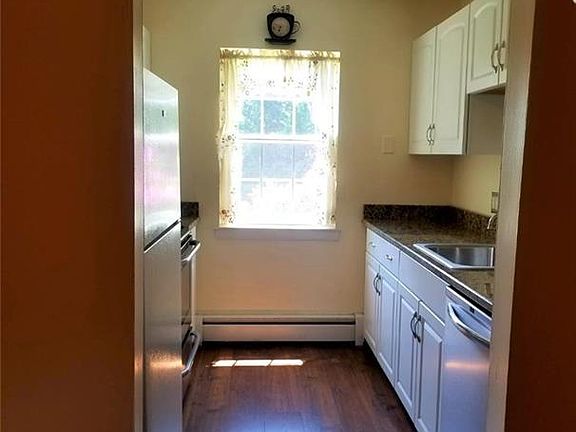 Light & bright open floor plan 2nd Level (middle level) 2 Bedroom, 1 1/2 Bath Unit. Updated Kitchen with granite counters & stainless appliances. Just installed carpets in Bedrooms. Wood laminate floors in Living Room, Dining Area & Kitchen. Available June 1. No smoking. No pets-per the Association. Good credit and references. One year lease, security, first and last rent. Heat & hot water included in rent. Storage & Laundry in building's lower level. Convenient, assigned parking near door, just steps to seasonal pool.