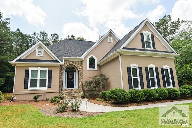 This is a great house in a well established west Oconee subdivision with large lots and easy access to Athens, Watkinsville, and Atlanta. The home includes wood floors throughout the main living area and master bedroom. There is a fireplace and there are vaulted ceilings in the living area giving it a luxurious feel. There is a huge deck that spans across the back of the house and overlooks the mostly private back yard making it a great place to entertain. The kitchen is white and has updated, stainless steel appliances. The master bathroom has dual vanities a garden tub, shower, with walk-in closet. Upstairs are 3 additional bedrooms. The stucco has been inspected and is under a warranty bond. This house has been meticulously maintained.