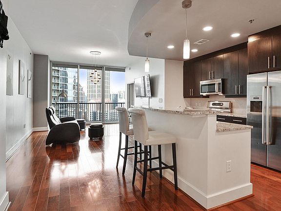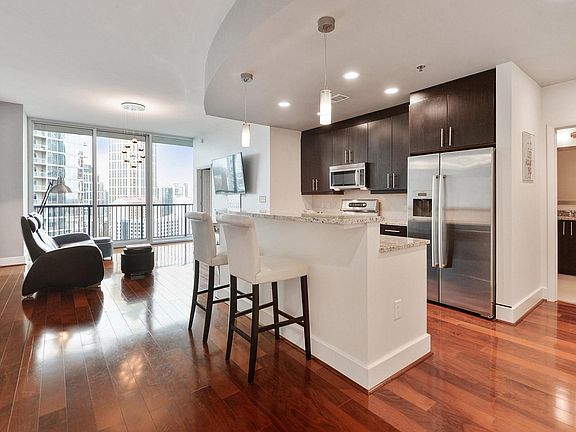 True 1-bedroom 1-bath condo $3,400/mo FULLY FURNISHED with ALL UTILITIES included (unfurnished also available at lower rent amount for a serious long-term tenant - inquire if interested) available on 6/1/2025 or possibly sooner. High ceilings, floor-to-ceiling windows throughout, all-stainless steel kitchen with granite countertops. Move-in ready: brand new Queen size bed, leather sofa with 2 matching side tables, coffee table, 2 bar stools for the kitchen island, 2 TVs mounted in living room and bedroom walls. Amenities on site: gym, swimming pool, shared clubroom with poker and billiard tables, 2 grills for all residents to share, bicycle racks on-site. 24/7 concierge team and 24/7 uniformed security guard on site. VERY safe building. Walkthrough on YouTube: /watch?v=qRXTbeILHS8 Tons of restaurants, entertainment, coffee shops around. Easy access to the whole city without needing a car (which is a treat in Atlanta!). Fully furnished turn-key, ideal for corporate housing. All utilities bundled together (already included in the rate): internet, cable tv, internet, power, water, 1 assigned parking space. We love pets (bring them along)! We keep the neighborhood safe! All applicants are subject to employment verification and criminal/credit check. Fast approval within 12 hrs. This apartment has LEGAL leasing status with the building. Thank you for browsing! PS: the 3-D tour and blue floor plan were added by Zillow - they are inaccurate. Please see the black-and-white floor plan instead.
