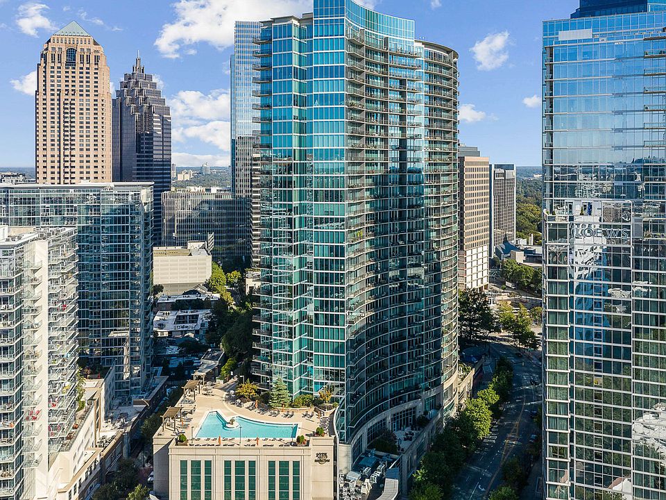 1010 Midtown! Prime location and modern finishes define this well-appointed 2-bedroom, 2-bath residence offering 1,213 sq ft of open-concept living in one of Midtown's most desirable high-rises. This competitively priced unit features a split-bedroom layout with a private primary suite, walk-in closet, and en-suite bath, along with a spacious secondary bedroom and full guest bath. Enjoy 10-foot ceilings, hardwood floors, and expansive floor-to-ceiling windows that fill the home with natural light and showcase impressive Midtown skyline views. The open living and dining area flows into a sleek kitchen with stainless steel appliances, granite countertops, ample storage, and a private balcony. Located on the Midtown Mile, you're steps from Whole Foods, Publix, Cafe Intermezzo, Piedmont Park, the High Museum, the Fox Theatre, and countless dining and entertainment options, with easy access to MARTA and I-75/85. 1010 Midtown offers exceptional amenities, including a rooftop Sky Park and heated saltwater pool with cabanas, modern fitness center, resident lounge, media room, outdoor grilling areas, 24-hour concierge, and secure building access, plus on-site dining and retail just an elevator ride away. Additional features include two assigned parking spaces (620 & 621), close proximity to the 8th-floor pool and Sky Deck, the 4th-floor gym and lounge, convenient garage access via Crescent Avenue, and a well-managed HOA. 12 month minimum lease term.