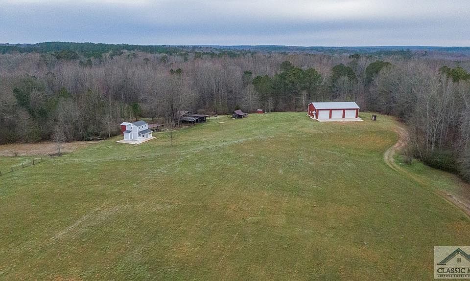 Private Paradise! 23.36 acres in Morgan Co(1.65 ac is just over the Walton County line). Approx 10 acres in pasture grass, remaining acreage in woods & hardwood bottoms along the creek. A unique property featuring a 36' x 64' Metal Morton building with 3 double electric doors, totally insulated, finished interior & full bath! A weekend cabin features a covered front porch, vinyl wood plank floors, half bath & bedroom loft. A rustic hunters cabin with electric, covered porch & wood stove, a small storage building, covered wood storage, a fire pit, old smoke house & so much more to enjoy! A Must See