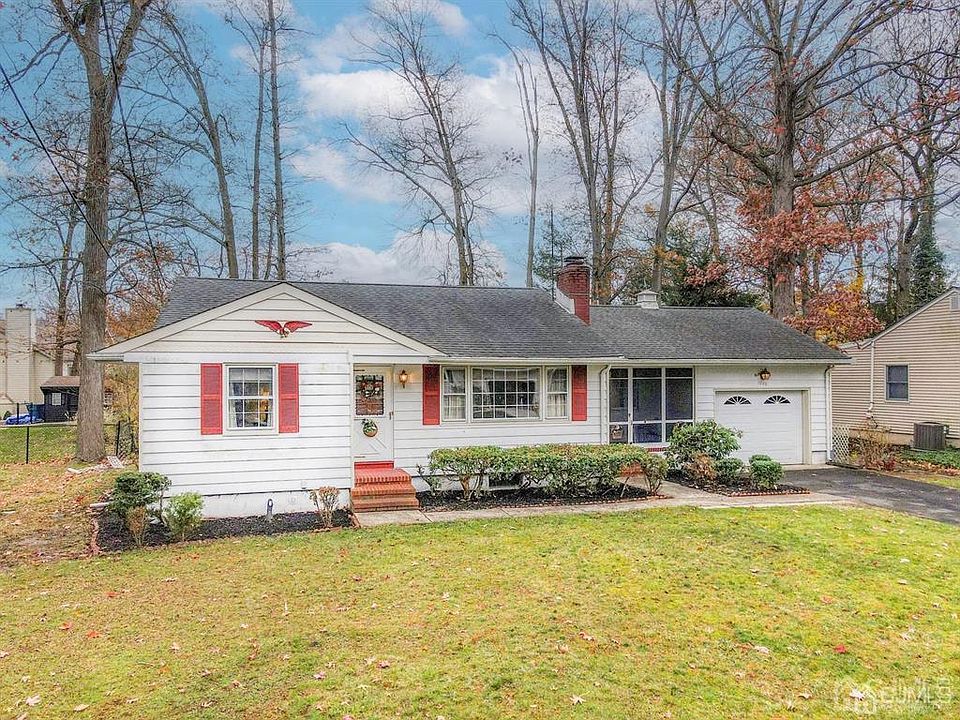 This charming ranch style home is nestled in a beautifully rustic part of North Brunswick! As you step inside the main front door, you're greeted by a large living room, with it's big, sunny window and cozy wood-burning fireplace! This leads to the dining room, a great place to entertain! The eat-in kitchen features lots of cabinets and counter space, as well as a charming split door that leads to the screened-in front porch, a fantastic spot to read a book or stare at your phone! The bedrooms have lots of windows and great closet space, and the main bath features a tub shower with sliding glass doors! There are also hardwood floors beneath most of the carpeting! The home features a big, partially finished basement, with a den/rec room, a full bath with stall shower, and an unfinished area with a laundry area, workbench, and plenty of storage! There is also an oversized one-car garage with large storage loft! Now, one of the best parts of this home is the location! It sits on a beautiful lot with an amazing, open backyard, just ready for fun! And around the corner is Boyd Pond, as well as the playground at Boyd Park! This home is great for commuters, is close to shopping and entertainment, and don't forget North Brunswick's schools! Something for everyone! Come see it today!