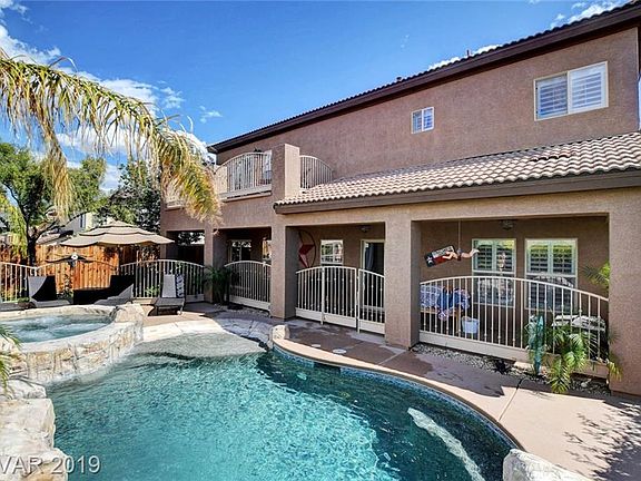 STRIP & MOUNTAIN VIEWS! GATED COMMUNITY, POOL & SPA, CASITA W/ FULL BATHROOM! BEDROOM DOWN STAIRS W/ 3/4 BATHROOM! PLANTATION SHUTTERS, BEAUTIFUL WOOD WALL PANELING, STONE KITCHEN CNTR. TOPS, PAINTED CABINETS W/ PULL OUTS, STAINLESS STEEL APPLIANCES, DOUBLE OVEN, WALK IN PANTRY! UPGRADED BASEBOARDS, WROUGHT IRON STAIR CASE, MASTER BATHROOM SHOWER W/ BENCH! EXTENDED COVERED PATIO & BALCONY! EPOXY GARAGE FLOORING, GARAGE STORAGE RACKS!