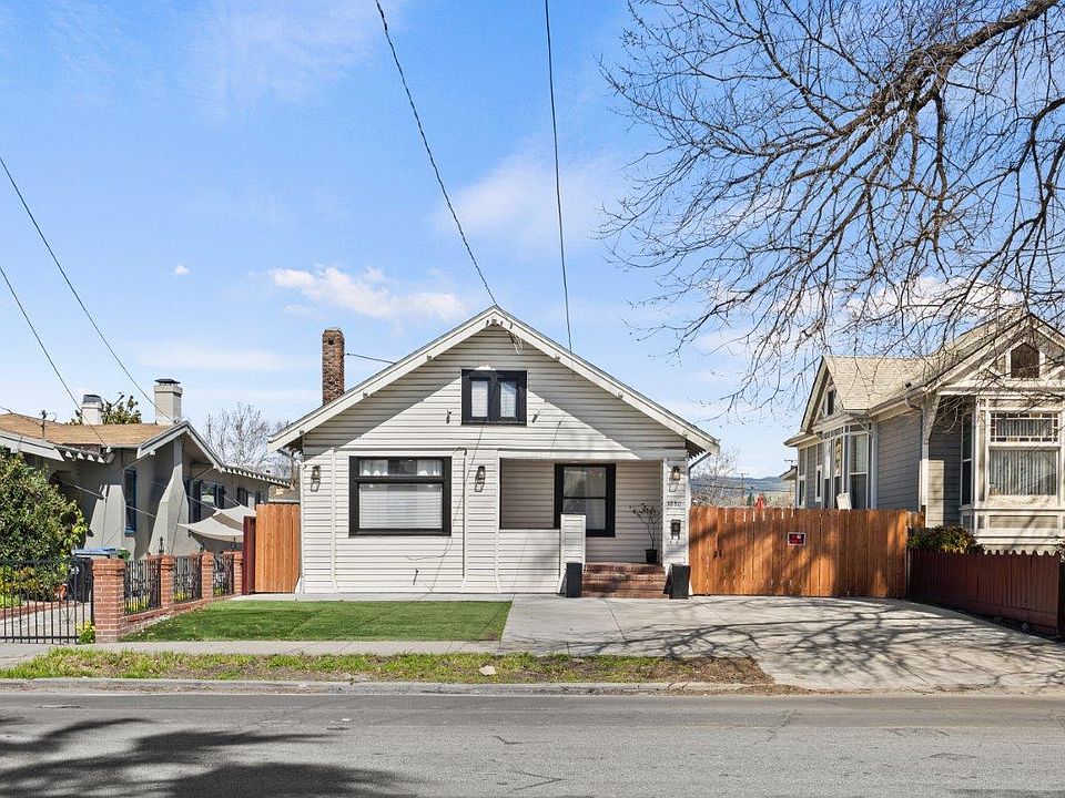 Charming 2 bedroom, 1 bath home near downtown San Jose. Freshly painted interior and dark engineered wood floors throughout. The Living room has beautiful wood beams, an electric fireplace and a large loft for an office or some privacy. The kitchen has a deep farmhouse sink, gas stove and dishwasher. There are also Washer/Dryer hookups and room for a small dinette set. The Master bathroom has been updated with tile floors and walls. There is a 2nd full bathroom that was added on, permits are unknown. Large private relaxing backyard perfect for entertaining family and friends and potential for an ADU. Plenty of Parking on the side and easy access to major highways and downtown.