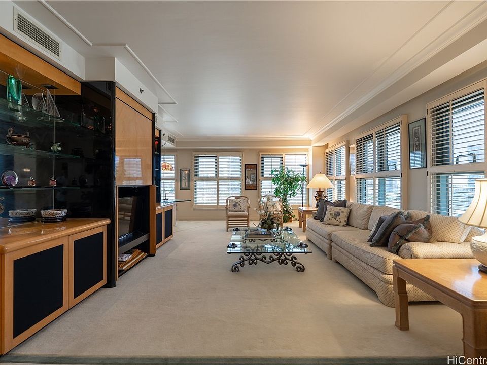 Queen Victoria Residences is a classically luxurious building and features 3-4 units per floor. There's an east and west wing of the building, each it's own pair of elevators. The 04 stack is on the preferred Diamond Head side of the building. The layout and spaciousness of this condo will make you feel you are living in a single family home. It features a large living room, a main dining space, with an additional dining space just outside of the kitchen. Four zones of central air conditioning cools the unit giving you total control in different areas of the unit. A large walk in storage closet along with another storage space in the parking garage. Amenities include a poolside BBQ grills, heated pool and hot tub, car wash area, fitness room, and a party/meeting room. Queen Victoria is minutes away from the freeway on/off ramps, Blaisdell center, with several restaurants and shops nearby. Listor owner.