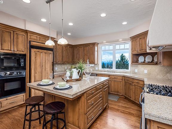 NARRATED VIDEO WALK-THROUGH & FLOOR PLAN! This Terwilliger Hts gem has amazing 180 deg views featuring Mt Hood! Enjoy the sunrise from the covered patio or 3 other outdoor areas! The 900sf Owners Suite is a retreat w/private balcony, mult closets w/laundry/sink/desk & sitting area(loft)! Updated kitchen w/granite counters, built-in microwave, BI-oven & also a free standing gas range, great for entertaining! Beautiful custom alder cabinetry throughout. Lot behind house also for sale RMLS#20154470