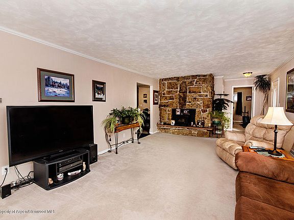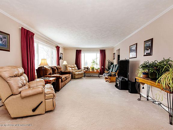 This large home on a corner lot has storage everywhere with views East and South and extra parking. Abundant natural light on the main level with open kitchen, oak cabinets, breakfast bar and dining room. three bedrooms and a bath with jetted tub. Long living room has rock fireplace with wood stove insert.. In back is a covered patio, fenced yard, vehicle access gate and trees. Lower level has family room, bath, pantry and under stair storage plus wall shelf storage units. $500 TLC Carpet 1 allowance at closing. Don't miss this one.
