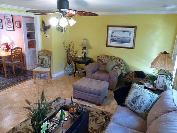 Charming corner lot cottage with many upgrades to include marble flooring in kitchen, heat pump, fresh coastal paint colors, & roof. Most furnishings convey making it move in ready. Garden patio with stamped concrete, screened porch, and large sun room. Within walking distance to Cocomo's Restaurant and several Marina's. Many possibilities with Waterfront Commercial zoning in place.