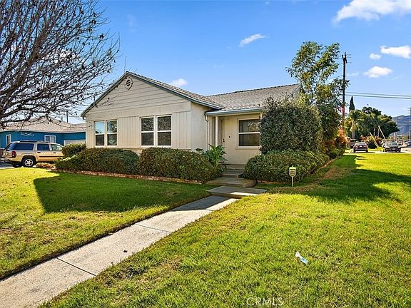 Welcome to this lovely home located in Corona. Boasting pride of ownership with many upgrades and renovations. This home sits on a large corner lot with beautiful mature trees, newer stucco and paint, shrubs for privacy, and in an established neighborhood. Step into this home with large formal living room, upgraded carpeting, neutral colors, quaint dining area, newer windows and charming lighting fixture. Step into the galley kitchen with wooden cabinetry, granite counter tops, tons of storage space, wood flooring, built-in desk area, and open to the formal dining area. This was originally a bedroom converted into a lovely dining room with built-in wooden cabinetry, ceiling fan. Home offers a HUGE family room/3rd bedroom with inviting fireplace, a second bedroom with stand-alone shower, toilet and pedestal sink, laundry access, carpeting and access to the garage. This space is perfect for entertaining/primary bedroom, and has sliding glass doors leading to backyard. In the hallway are large linen closets for space and a full bathroom with wooden flooring, shower/tub, wooden vanity for more storage. Home offers two more good sized bedrooms with hardwood flooring, deep closets, and nice sized windows for natural lighting. Backyard is nice sized with large porch and cover, concrete, grass, trees two newer sheds, and alley access. This charming home is located close to shopping, restaurants, schools and freeway access.