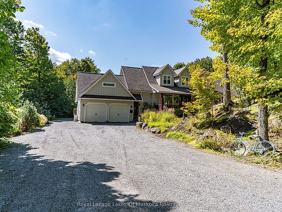 Discover the perfect blend of nature and luxury with this stunning 2.7-acre property, ideally located in one of Muskokas most desirable neighbourhoods. Surrounded by pristine forest and renowned natural beauty, this retreat offers unmatched privacy while being just minutes from Hwy 60, Peninsula Lake, Lake of Bays, Limberlost Reserve, Algonquin Park, and the vibrant Town of Huntsville. Featuring 5 bedrooms and 6 bathrooms, including a beautifully appointed master suite, this home provides plenty of space for family and guests. Each bedroom is complete with its own private bathroom, making it ideal for multi-generational living or hosting visitors in comfort. The double-car garage is a true bonus, with a heated workspace, powder room, and an incredible loft above that offers its own bedroom, bathroom, and private deck with views of Peninsula Lake. Whether used as an extension of the family home or continued as a successful Airbnb, the possibilities are endless. Inside, gather around the grand stone fireplace in the spacious living room for cozy evenings, or channel your inner chef in the modern kitchen with granite countertops and abundant storage. Step outside and unwind in the Muskoka Room or bask in the sun on the recently updated deck, you can also explore the community trail system right at your back door, or head just minutes away to the beach and boat launch on Peninsula Lake part of a scenic four-lake chain that connects to Fairy, Mary, and Vernon. This exceptional property truly has it all: privacy, convenience, luxury, and access to Muskoka's best outdoor adventures. Don't miss your chance to experience everything this home has to offer.