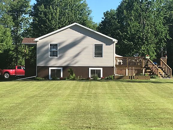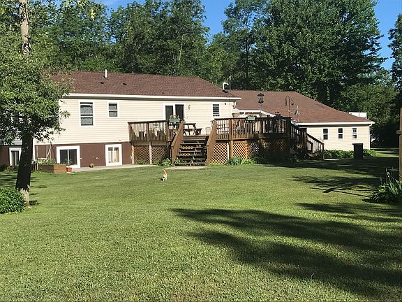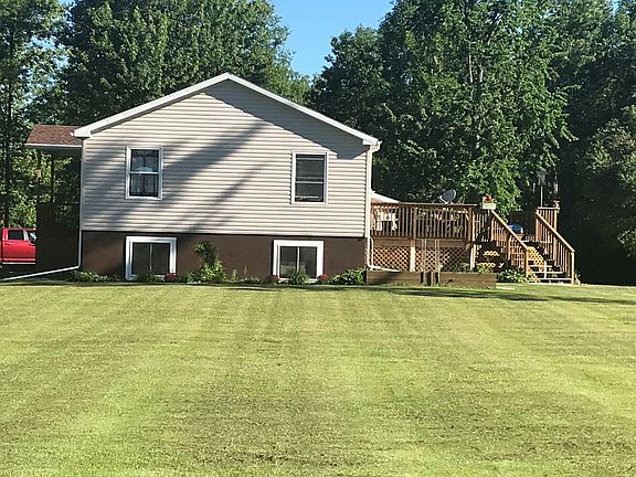 Beautiful raised ranch on a 2 acre mowed lot with 5 additional acres of woodland in South Jefferson School District. The yard includes mature apple trees with a perennial natural area. The top floor includes an open concept with kitchen, small breakfast bar, dining & living room. Glass sliding doors exit dining room to large 22X24 deck, with double stairs to yard. Also on top floor the master bedroom & private bathroom, 2 more bedrooms & second bath. Floors are full thicknesss oak hardwood. The lower level has heated floor & includes a spacious family room, 2 bedrooms, 1 full bathroom, office nook, 2 storerooms, a large laundry/utility room with 3 closets. & 4’ door to garage. Attached 2 stall garage boasts 10’ overhead doors, attached to rear of the garage is a 12x28 storage area with 6’ overhead door for utility vehicles. Driveway is 30’ wide, with additional lane parking off the end of the garage. Other additions include a beautiful covered front porch entry(2013), and a new shingle roof(2016). This family home is ready to move in with plenty of play area