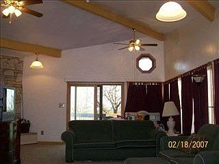 Mini-farm on 10 acres m/l with a view. Fireplace, outdoor wood burning furnace, wrap-around deck. Mature orchard, well water, large metal building & detached garage - both with electricity.