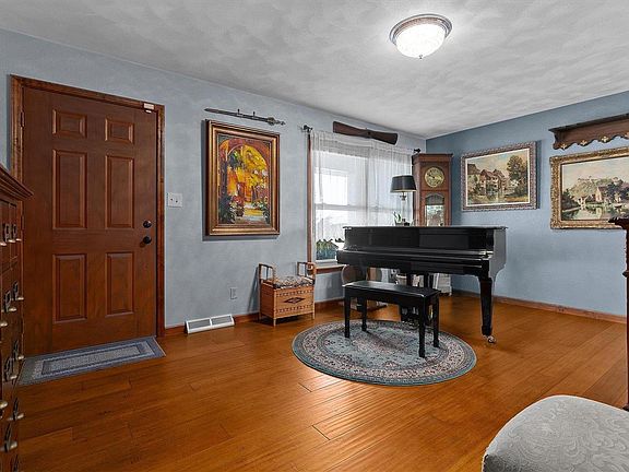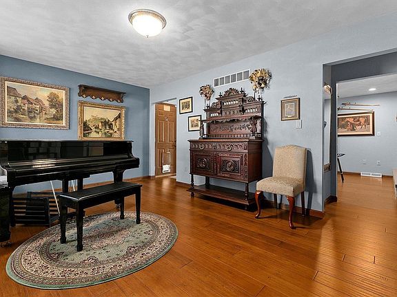 Welcome to this beautiful three-acre property just minutes from town, surrounded by farmland and including a lovely home, detached garage, barn and pond! The updated ranch home offers bamboo flooring throughout most main floor living areas, a large kitchen with custom cabinetry, appliances that stay and quartz countertops, updated bathrooms and an amazing four seasons room with a vaulted ceiling and filled with windows from which to enjoy the outdoor scenery year-round, as well as an attached two-car garage. The lower level offers a recreation room with a bar and a bonus room. Outdoors, find a large, covered patio with backup generator hookup, raised garden beds and landscaping to complement the views of the pond and acreage. The detached garage is complete with heat and AC and includes a 50-amp RV hookup. The newer outbuilding offers electric, an overhead door and loft. This property has it all! See it today! Additional Rooms: Sun Room