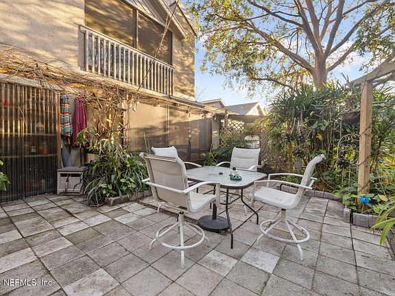 What a wonderful opportunity in this community. So convenient to schools, shopping and I-295. Cooks Kitchen has new range, new microwave, plus dishwasher and stainless refrigerator, with breakfast bar, and the washer and dryer are included. 2017 HVAC with UV is well maintained and the ductwork was recently cleaned, plus the water heater is brand new .Living Dining Combo downstairs with low maintenance durable flooring, has fireplace and flows onto the screened covered patio, and a secluded private backyard, paver seating area & fire pit, ideal for relaxing or entertaining. UPSTAIRS features two bedrooms, and the owner's suite with ensuite bathroom, HUGE shower, has a screened balcony. Upstairs also has new carpet. In addition to covering the landscaping and exterior maintenance, garbage, and pest control, the association fees of 477 Monthly also cover the water and sewer, & the association recently replaced the roof. There has not been a better time to purchase a CONDO in JACKSONVIL