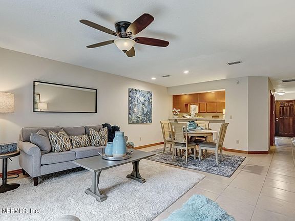 The spacious Owner's suite offers room for a small seating area under the window. Unwind in the garden shower/tub combo, and revel in the convenience of a large vanity with a sink and a mirrored wall. Three clothes closets, including a walk-in, provide ample storage. HOA fee covers water, sewage, pest control, garbage, lawn maintenance, landscaping, exterior building repairs/maintenance, exterior building repairs/maintenance, and exterior building insurance. Convenient Location: Minutes away from I-295 and I-95, with easy access to Orange Park and NAS JAX. Enjoy proximity to shopping, beaches, and entertainment.