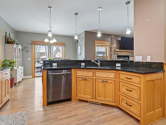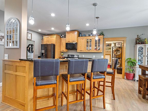 bathroom! Walkout basement fully finished w/gorgeous second kitchen including granite counters, ss appliances - Could be MIL suite, rented, or keep it yourself as a massive entertaining area. LL also offers second laundry, 2 bathrooms, & a large media room w/ theater walls & stadium seating. Over-sized, insulated, heated garage has plenty of room for all your vehicles (up to 4) & has a workshop! Don't miss the upper storage area! 4 zones for heating and a/c in the home! Roof was replaced in 2020, yard has been meticulously maintained w/sprinkler system, raised garden/flower beds & new rock around entire home. A MUST SEE!