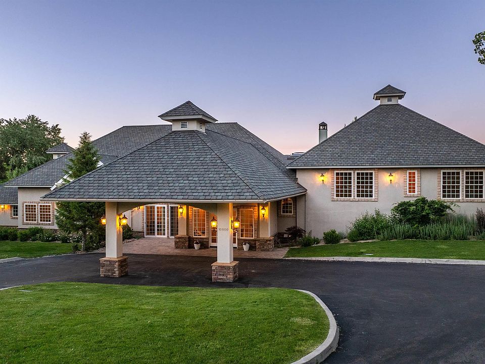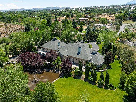 Extraordinary 2+ acre Shay Estate designed by well known architect. Grand home featuring luxurious amenities & exquisite craftsmanship. This magnificent residence boasts a stately approach with a porte-cochère driveway, setting the stage for elegance in the country. 5 large bedrooms, each with its own en-suite bathroom, ensuring privacy and convenience for every member of the household. Additionally, a versatile flex room can serve as a 6th bedroom, office, or TV room, adapting to your needs., Primary bedroom is on the main level. Unobstructed views of Mount Rose and the Sierras from your front yard & dining room! For automotive enthusiasts, the property includes a four-car garage with a large storage room, as well as a separate RV garage. The primary bedroom, located on the main floor, is a sanctuary of comfort with a custom mantle fireplace, French doors leading to the patio, and an adjoining en-suite office, nursery, or gym. The suite also features two walk-in closets and a luxurious bathroom with double sinks, a jetted tub, and a walk-in shower. The gourmet kitchen is a chef's dream, equipped with knotty Alder cabinets, granite slab and butcher block counters, a prep sink, top-of-the-line appliances, and a wine fridge. A breakfast nook offers serene views of the park-like yard and pond. Home offers a temperature controlled wine room, Hickory floors add warmth and character, complemented by unique Tuscan wall textures. A double-sided buffet enhances the dining experience. The loft area overlooks the great room, while the balcony provides stunning views of the pond and the expansive grounds. Outside, the private orchard is a delightful retreat, featuring peach, apple, and plum trees, offering a taste of nature's bounty right in your backyard. Experience the pinnacle of luxury living at the Shay estate, where every detail is designed to provide an unparalleled lifestyle. Floor plans in the documents.
