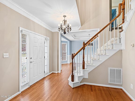 This inviting and spacious 5-bedroom, 3-bathroom, 3200-square-foot home is nestled in North Raleigh's Wood Spring Community. It's an ideal abode for those who value comfort and practicality. With 18' ceilings in the great room and a cozy gas fireplace, plus 9' ceilings throughout the rest of the first floor, it offers a welcoming atmosphere. Situated on a .38-acre lot, this home boasts a range of features including a large screen porch and an open private deck, perfect for enjoying the outdoors. Its convenient location near I-540, RTP, and RDU airport makes it accessible without sacrificing comfort. Beyond its amenities, this home is part of a lively neighborhood with playgrounds, sidewalks, and a nearby pool with clubhouse memberships available. Nearby, you'll find grocery stores, restaurants, shops, and more for added convenience. Outdoor enthusiasts will love the nearby Greenway Trails and Falls Lake Dam Recreation Area, offering various outdoor activities such as hiking, biking, paddle boarding, and canoeing.
