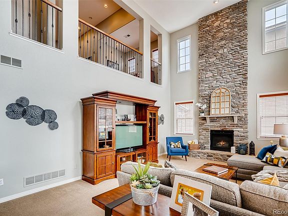 Welcome home to this opulent residence located in the highly desirable Highland Ranch neighborhood, The Hearth. This Shea Hawthorne model was upgraded to include features only available in the model homes for The Hearth, so it is truly unique! The travertine tile entryway carries you through the foyer, past the home office, towards the gourmet kitchen and 2-story Great Room in this this well laid out, upgraded home. The kitchen has access to the oversized dining room via the butlers breezeway, and includes a gas range, wine fridge, stainless steel appliances, breakfast nook and plenty of storage. The 2-Story Great Room is perfect for relaxation with space for a media center & seating, lots of windows, a floor to ceiling gas fireplace, and is open to the living space above. Four bedrooms are located on the upper floor with an extensive private master suite, separated from the other rooms, complete with a 5-piece bath & large walk in closet, and extended shower with dual shower heads. The upper living area also includes a full guest suite, small built in study/work area, hardwood floors in the common area, and a piano/reading nook. The third level has an expansive finished loft, perfect for exercise, another home office, media, flex space. The full, finished basement has a guest suite, wet bar, wine fridge, dry storage, and lots of space for entertaining. There are 9-foot ceilings throughout main and second, with 8-foot doorways, lots of natural and installed light, and an expansive back and side yard with a stamped concrete patio, perfect for entertaining. The 3-car tandem garage is perfect for extra storage or a workbench. New interior and exterior paint added in fall of 2019. Located within walking distance to Southridge Rec Center, open space trails, Paintbrush park, shopping, and amenities. Quick access to highways, schools, and the Douglas County East/West Trail Head.