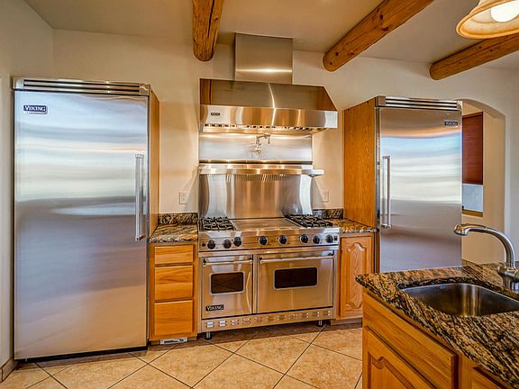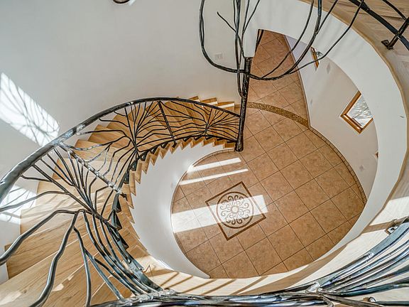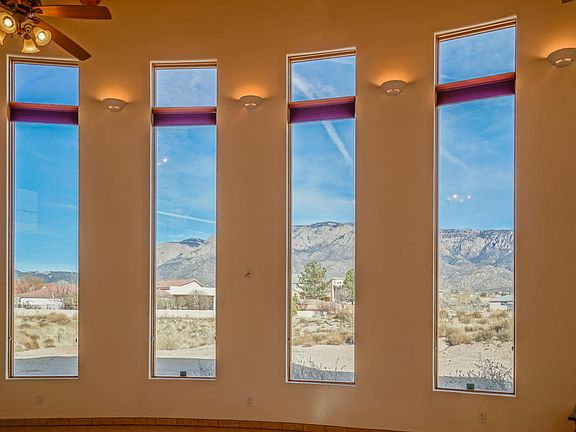 Welcome home. Arrive at this stunning custom home with Sandia views. Centerpiece 900 sqft 2 story living room with wood ceilings, fireplace and custom 12' windows to take in the vistas. Gourmet kitchen with granite and commercial grade Viking Appliances. Ground floor master bedroom with fireplace and a spa bathroom. A custom curving staircase leads upstairs, where you will find 2 more bedrooms plus a loft and an office. Multiple view decks. Pre-inspection and 3D tour on file.