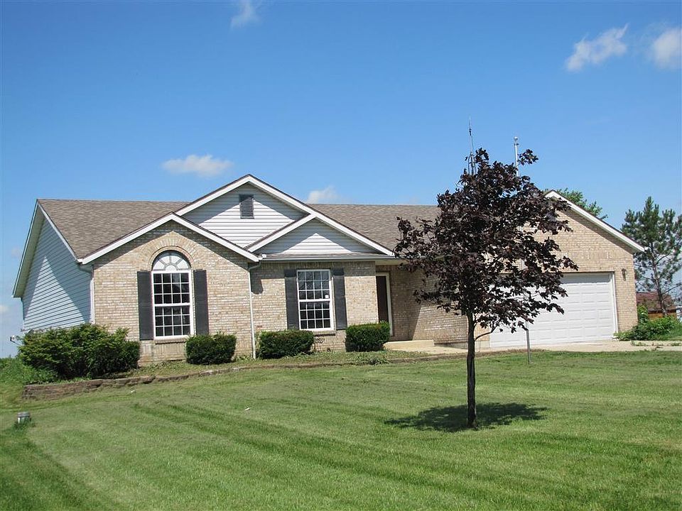 This country home on 2+ acres in Shelby county has lots to offer. A 4 bedroom, 2 bath ranch with lots of first floor living space and a 1361 sq. ft basement. Living room has a cathedral ceiling and an archway to the dining room. French doors lead from the dining room into the family room with access to the deck and back yard. Above ground pool, storage shed and big back yard overlook open spaces. 2 car attached garage and 2 car detached garage for all of your toys. Home has some missing floor coverings and drywall.