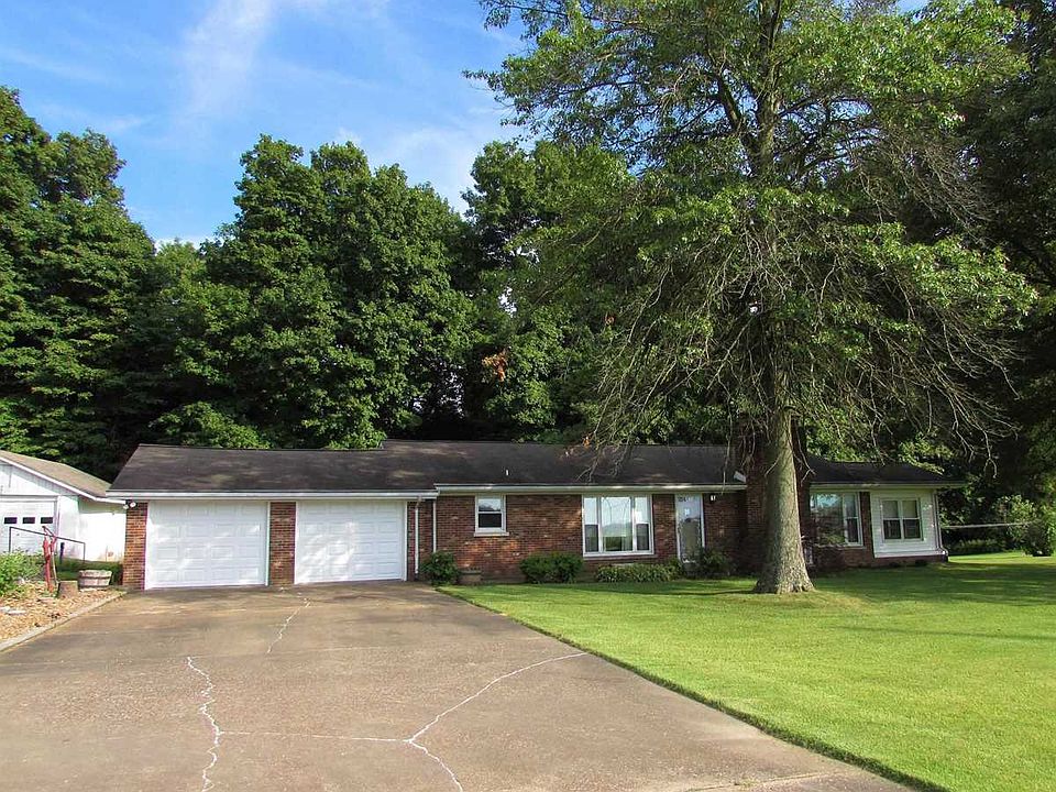 Don't miss this opportunity to enjoy country living just minutes from Evansville or Mt Vernon. 1517 sf ranch features 2br/1.5 ba, large living room with wood burner, original hardwood floors, fully appliances kitchen inc washer and dryer, dining room, and sunroom to view evening sunsets. 3rd bedroom on main level currently used as a laundry room but could easily be converted back to bedroom. Home sits on 1.38 acres which is perfect for garden, building for boat or camper, and 2 car detached garage. Walk out basement is 1400 sf with potential for additional bedrooms and family room. Utility room also in basement have laundry hook ups , shower, laundry sink, and plenty of room for storage.