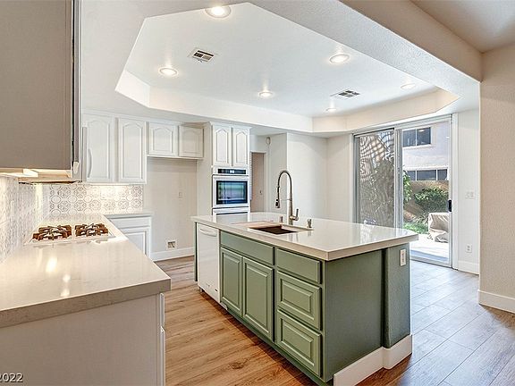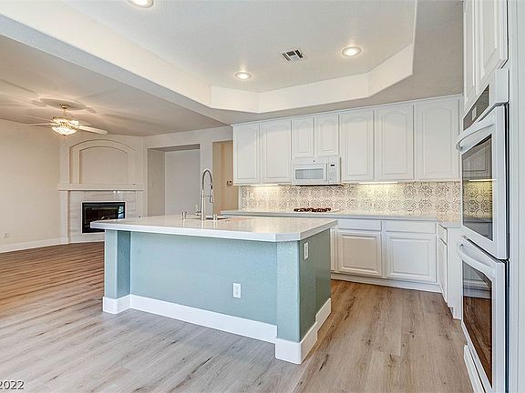 Completely remodeled 5 bedroom Summerlin home! New double ovens, countertops, floors, lights & newer tankless water heater! In addition to a pristine home, you can't beat this location, this gem is within walking distance of top Summerlin elementary, middle and high schools. Property is located right next to the mailboxes, and has no homes across the street, so there is lots of extra parting! The downstairs bedroom is perfect as a guest room, an office or playroom. Spacious island kitchen is open to the family room, complete with fireplace. Huge primary bedroom features an auxiliary space that could be a nursery, library, work out area or office with firplace to keep you warm on those cold winter days. Spacious primary bath with jetted tub and large walk in closet. All that plus a 3 car garage! This property is a 5 minute drive to Downtown Summerlin, Summerlin Pkwy and 3 min. to the 215 beltway. HOA is only $57 a month. This one checks all the boxes!