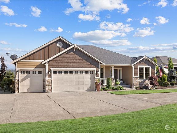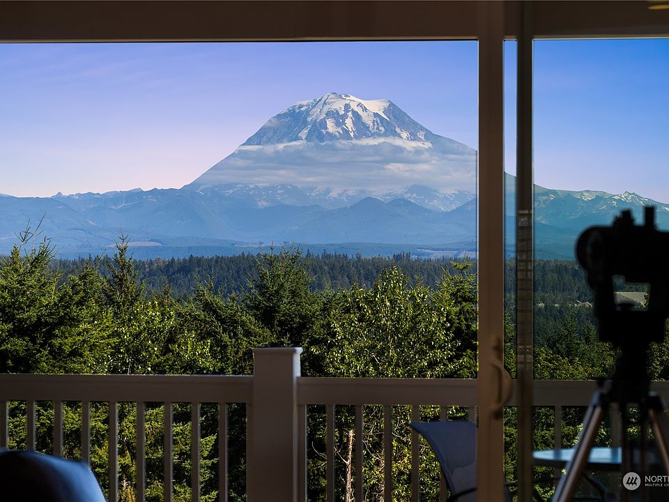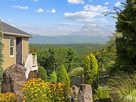 Welcome to this almost 4000SF home w/ stunning Mt Rainier & territorial views. Nestled on 1.22 acres at the top of Shawnee Ridge this private oasis flawlessly blends w/its natural surroundings. As you enter the foyer you are greeted by the Mt view & an open concept living space w/ engineered HW floors. A well appointed kitchen w/SS appliances, double oven & massive island provide space for culinary enthusiasts. W/ four spacious bedrooms & a dedicated office space this home provides ample space for multi uses. The layout is ideal for multi-generational living or separate apartment space with private patio. 3 car garage, covered deck with gas FP, & meticulously maintained mature landscaping offer numerous areas for play or entertaining.