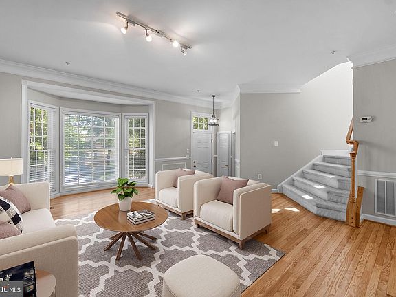 Charming end unit colonial townhome with 2489 sq ft and 1 car garage in sought after Waverly Woods community. The entire home was freshly painted in a neutral gray hue and the hardwood floors on entire main level were refinished in 2023. Step inside the main level featuring a spacious open floor plan featuring a large living room with wainscotting detailing and a bay window. The open eat-in kitchen has ample space for seating with a breakfast area /family room area, a large center island with breakfast bar, 42" cherry cabinets, recently installed Iced white Quartz countertops, stainless steel appliances w/gas cooking, hardwood floors and French doors to the deck. The large Primary suite boasts cathedral ceilings w/a fan, walk-in closet w/built-ins and an attached full bath with separate shower and soaker tub, double vanity, updated lighting and updated LVP flooring. Two other nice size bedrooms (one with new carpet), a full hall bath w/new LVP flooring & lighting finish off the upper level. The finished lower level walk-out basement hosts a spacious Rec Room with a gas fireplace, a powder room, laundry room and French doors to the backyard. The deck was recently power washed & sealed and backs to a treed view. Roof 2016 & HVAC updated.