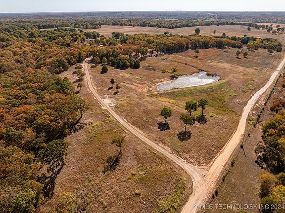 MOVE-IN READY 2 bed/1 bath home situated on a stunning 33 acres m/l. This property is perfect for cozy living or a country retreat after a day of outdoor adventures. The driveway curves back into the mature trees with house sitting back a ways off the the county road with pretty view of pond. Enjoy the secluded property, nestled in beautiful mature trees. The property is located on a dead-end road so traffic is extremely minimal. The property has exceptional hunting and fishing opportunities or even ATV riding right outside your doorstep. Seller says the pond is stocked with Catfish, bass, and blue gill. The perfect quiet get-away or homestead to enjoy the countryside. Property is supplied with an excellent water well, Canadian Valley Electric, and propane. There is also a nice 12x32 ft insulated storage building equipped with electric to store all your supplies, tools, or toys located next to home. Approximately 30 minutes from Shawnee, 45 min from Midwest City, and a little over an hour to Tulsa. Fiber Internet is believed to be available through Canadian Valley Electric.