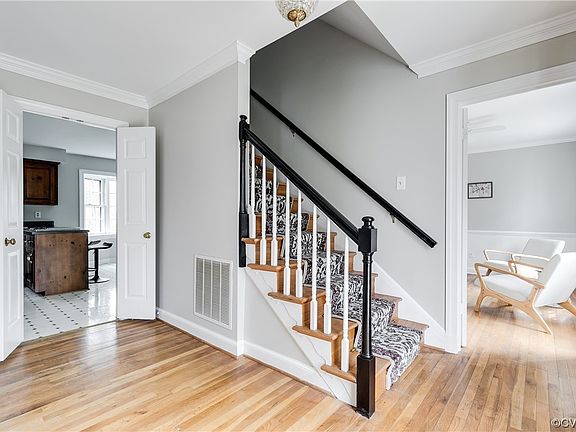 Welcome to this beautiful brick colonial at 10802 Brewington in the popular Whitaker Woods subdivision! Entering from the large columned front patio the home features a large foray leading to formal livingroom, a front office and formal dining room with French door access to back deck, all featuring wood floors and crown molding with large windows. Straight through the foray there is a spacious eat-in kitchen with sunny bay windows adjacent to the laundry room/mud room. There is also a cozy family room with fireplace and a beamed ceiling adjacent to the kitchen and an additional large 1st floor suite with built-ins and attached half bath which could be a bedroom or a recreation room, with its own deck access. Upstairs includes a primary suite with attached private bath and double sink vanity. Three additional well sized bedrooms, another full bath and a walk up attic complete the 2nd floor. Well situated in a highly sought after Henrico County School district and minutes away from Short Pump and main interstates!