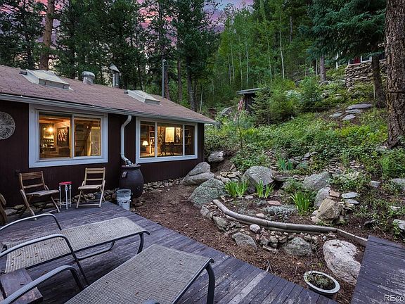 Colorado Mountain Cottage - This lovely jewel box of a home is nestled among the aspen and pine at the base of Blue Mountain. Tastefully remodeled with impeccable craftmanship. ** CASH ONLY - There is no septic system. Per JEFFCO regs, buyer must agree to install a septic system within 90 days of purchase. Water is supplied by a 500 gallon cistern. There is not a well. ** This home comes fully furnished. The open concept floor plan lives well with vaulted ceilings and windows framing the pretty rock garden landscaping and forested hillsides. Cozy up with a good book in front of the wood burning stove - very efficient, EPA rated. Modern kitchen has everything you need. Efficiency washer/dryer is included. The charming fully enclosed porch is a great 3-season room or insulate it to gain another bedroom, etc. Relax in the fresh mountain air on your spacious private deck and gaze at stars that seem touchable. Sold strictly *AS IS*. There is still some plumbing, electrical and carpentry needed to be done by Buyer. Grow fresh produce and flowers in your own greenhouse. A nod to nostalgia is the cutest outhouse you will ever see. 2 sheds are included for storing your tools and Colorado toys. On nearly one acre of land, this property backs to thousands of acres of forest. Less than 30 minutes to Boulder, Golden, Arvada. Golden Gate Canyon State Park is just 10 minutes up the road for some of the best camping, hiking and aspen viewing. Come up and live where you play!